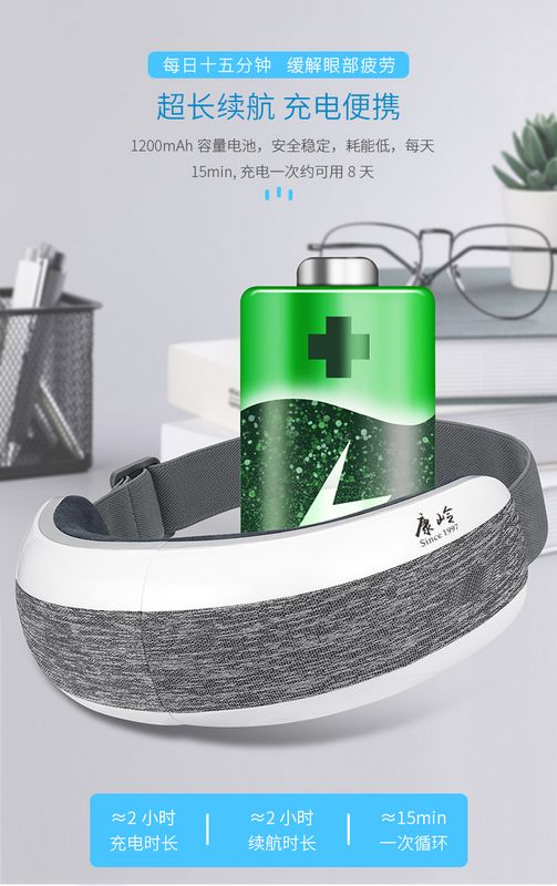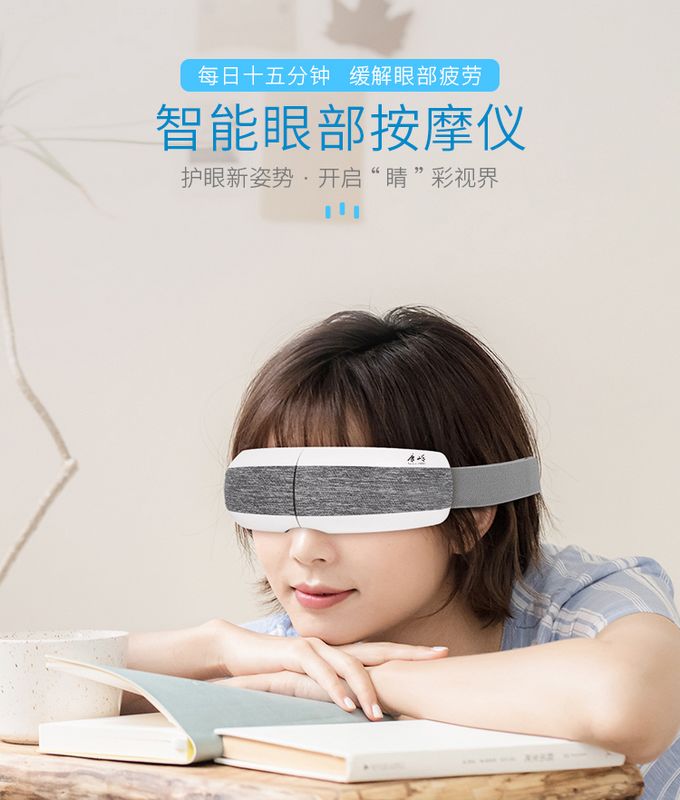 智能眼部按摩仪:护眼新姿势·开启“睛”彩视界,每日十五分钟,缓解眼部疲劳。匠心工艺·精雕细琢,四种模式、助眠音乐、超长续航、智能加热、一键开机、震动按摩、180°折叠、气囊按摩等功效。
